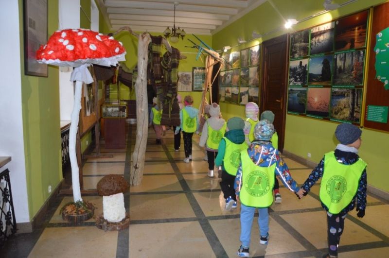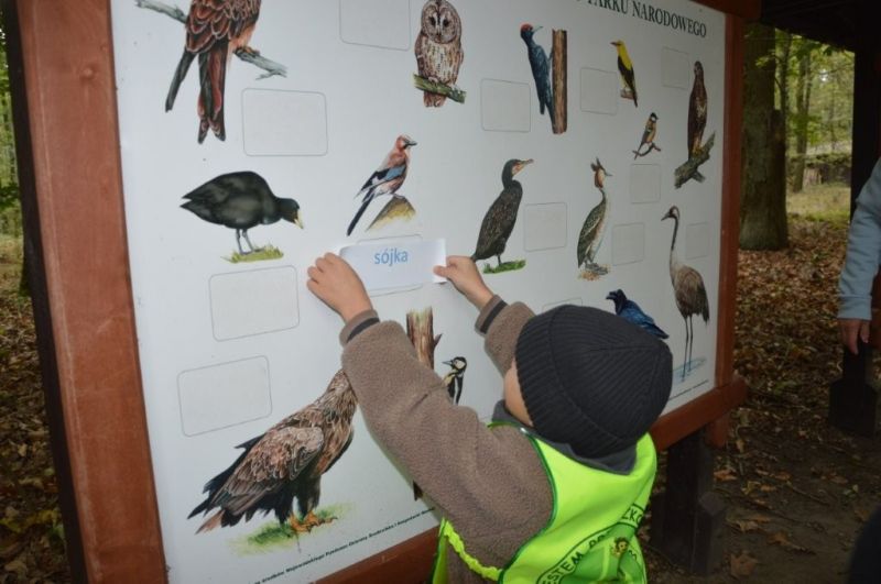 Jesień odziana się w chmurki i barwne liście z radością przyglądała się z ukrycia małym tropicielom przyrody, którzy z ochotą przemierzali sale Muzeum WPN i pobliski las.
