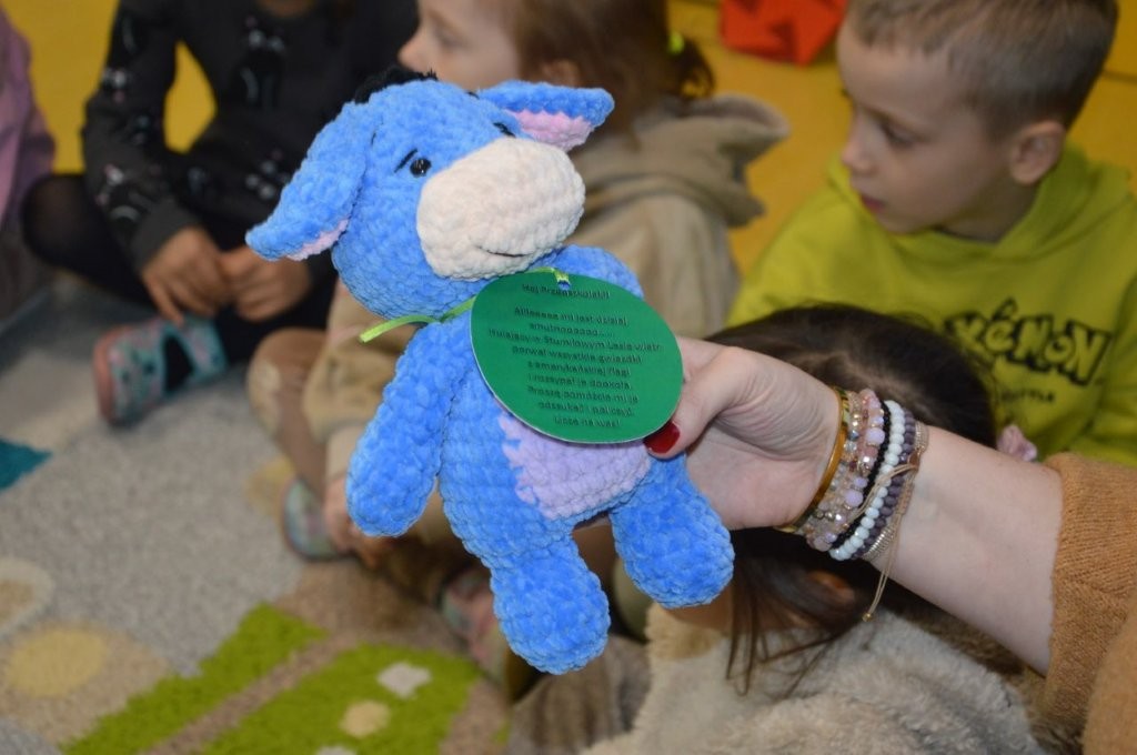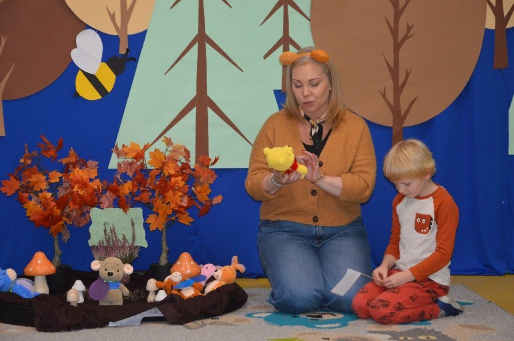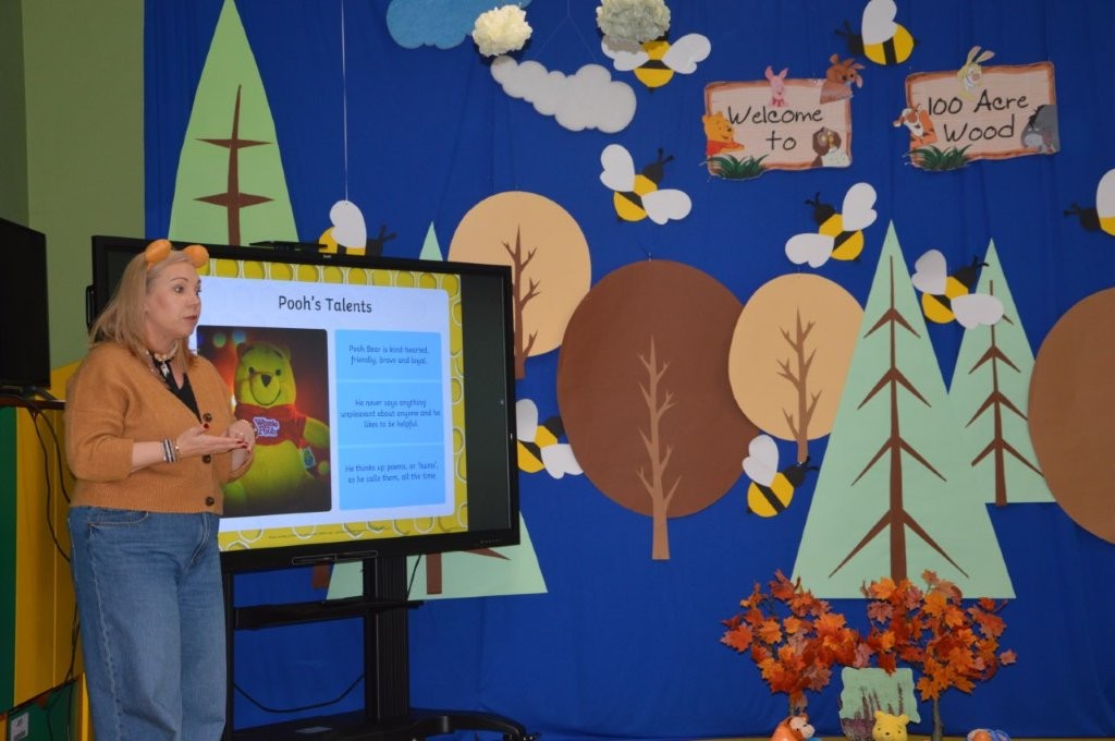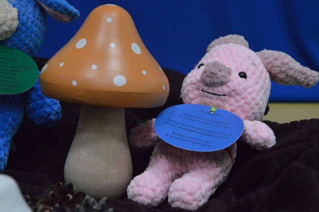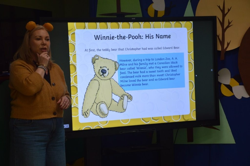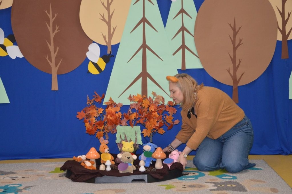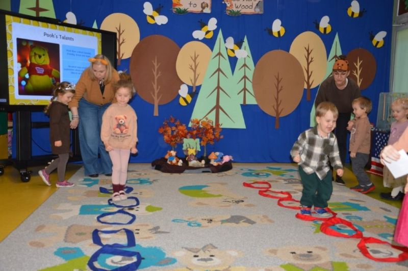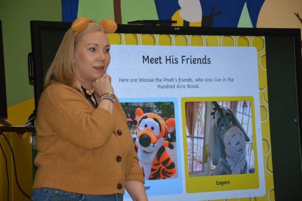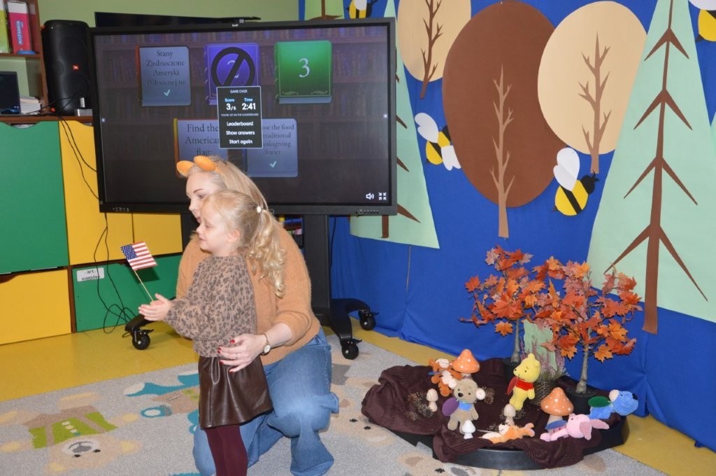 Podczas zabaw z misiami dzieci miały możliwość poznania kraju leżącego daleko od Polski, w którym językiem urzędowym jest język angielski. Przewodniczkami po tym rozległym i pięknym państwie były Panie Angliski: Kasia i Asia, a mięciutkich przyjaciół teddy bear (rodowitego Amerykanina) tj. Kubusia Puchatka, Prosiaczka, Tygryska,...