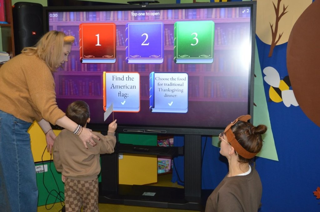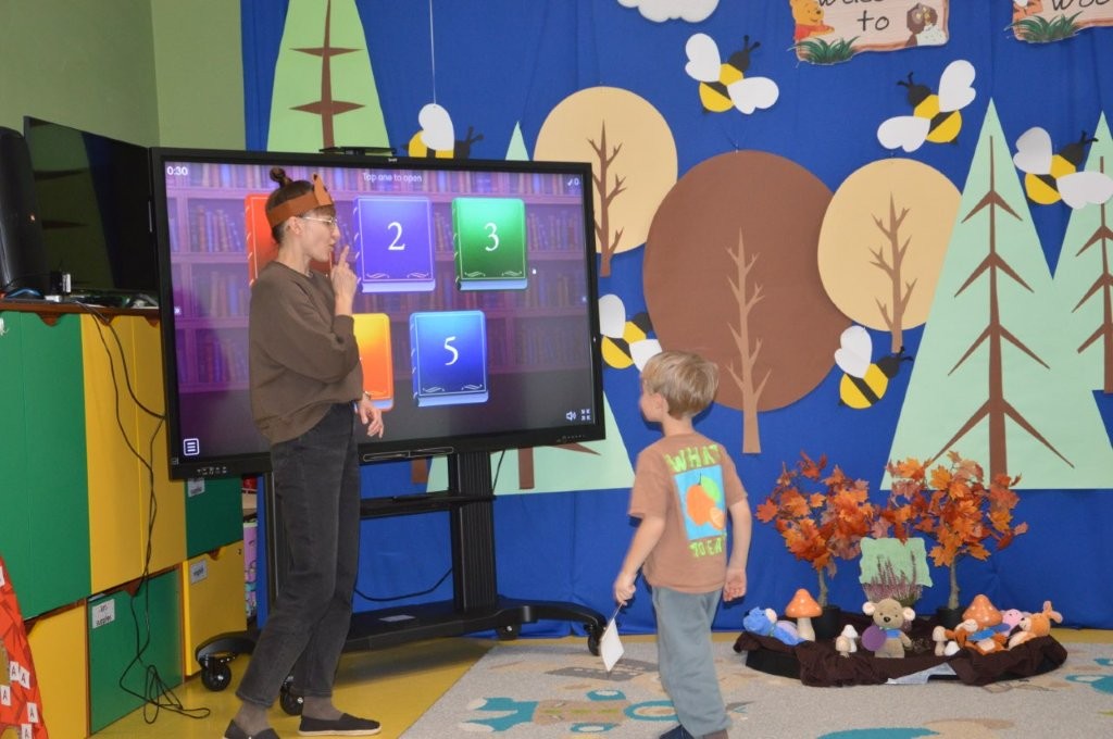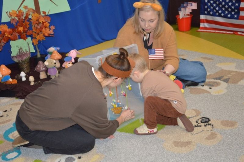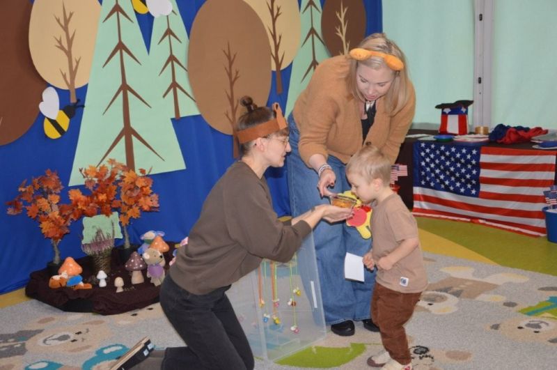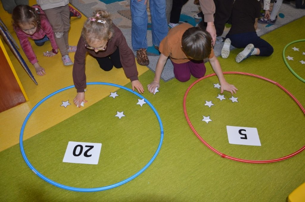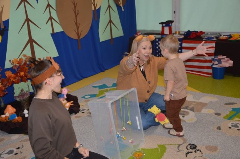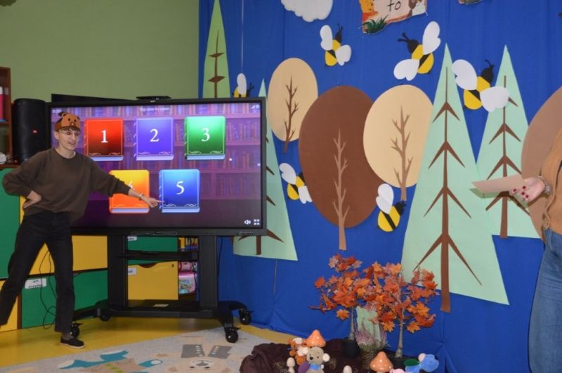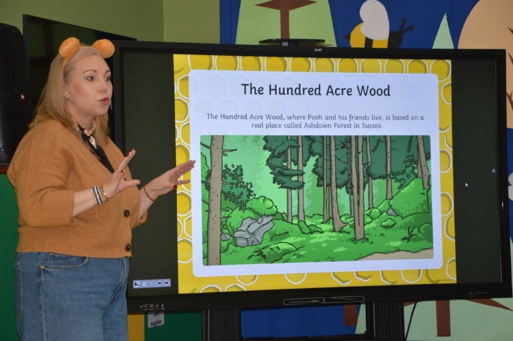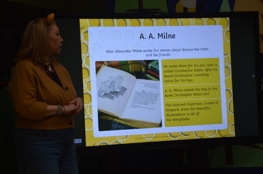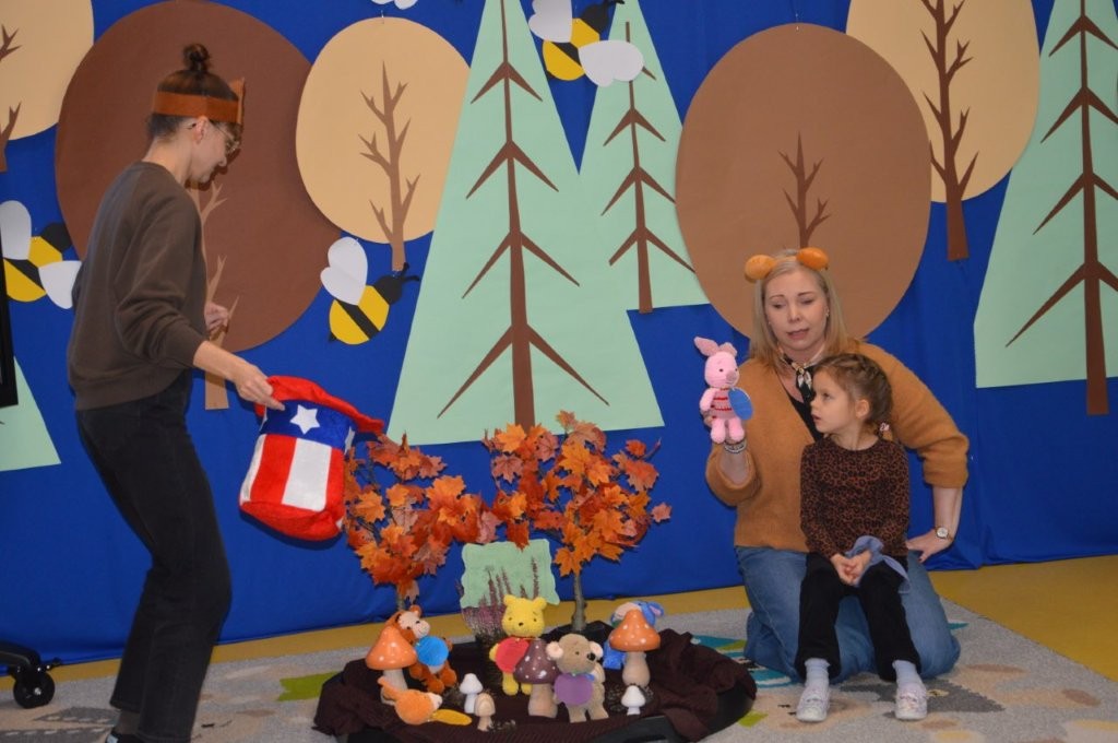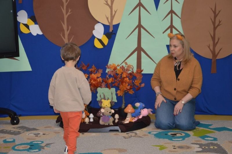 Podczas zabaw z misiami dzieci miały możliwość poznania kraju leżącego daleko od Polski, w którym językiem urzędowym jest język angielski. Przewodniczkami po tym rozległym i pięknym państwie były Panie Angliski: Kasia i Asia, a mięciutkich przyjaciół teddy bear (rodowitego Amerykanina) tj. Kubusia Puchatka, Prosiaczka, Tygryska,...