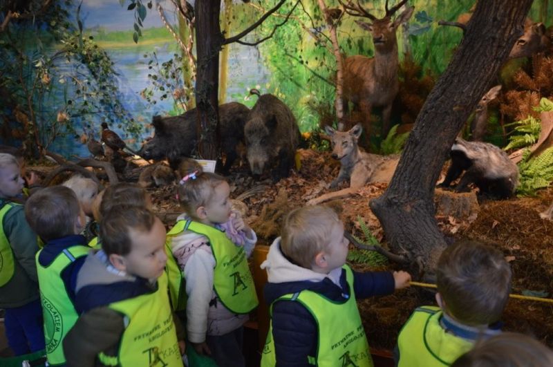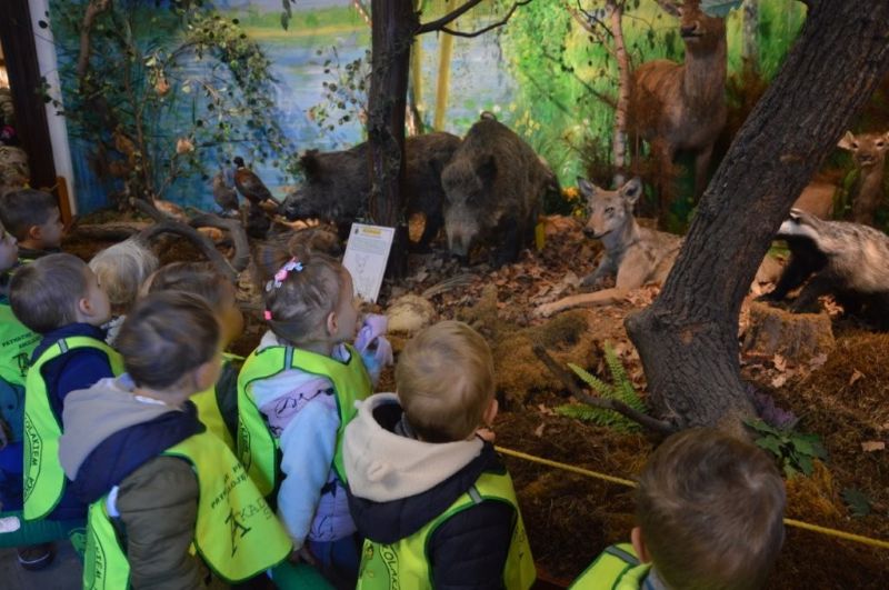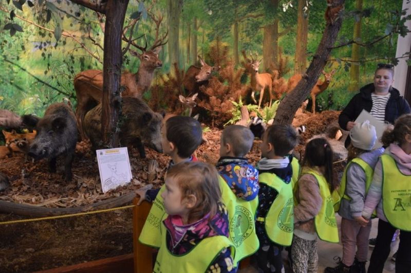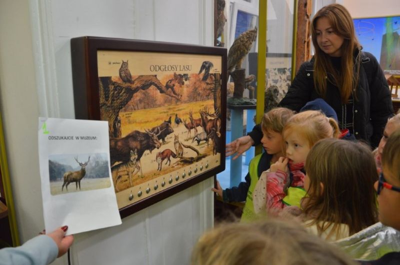 Jesień odziana się w chmurki i barwne liście z radością przyglądała się z ukrycia małym tropicielom przyrody, którzy z ochotą przemierzali sale Muzeum WPN i pobliski las.