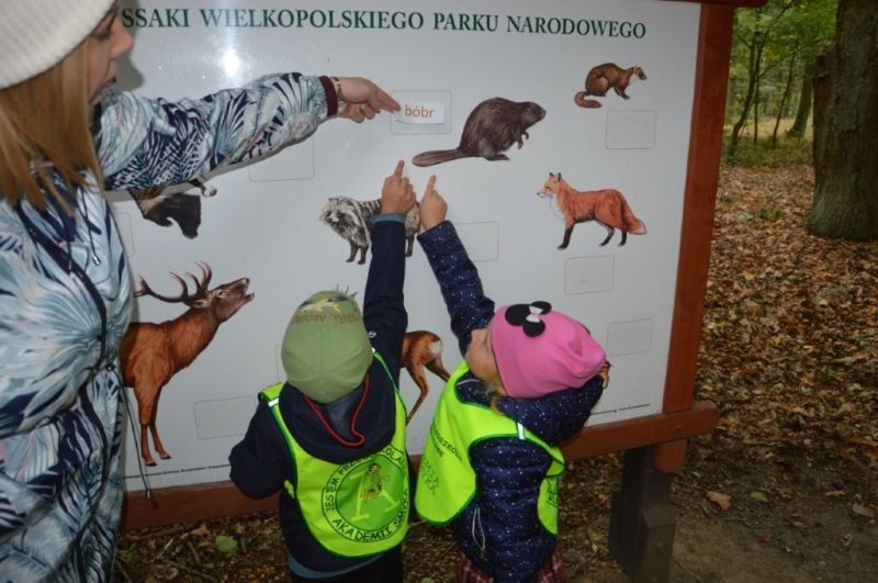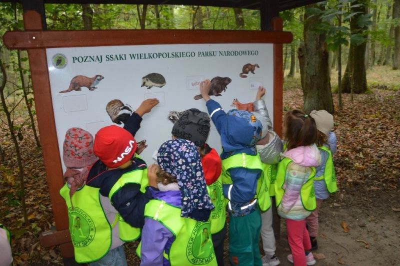 Podczas zabawy w "Leśną grę" poszerzały swoją wiedzę o drzewach i zwierzętach zamieszkujących obszar dawnej puszczy okalającej Poznań.