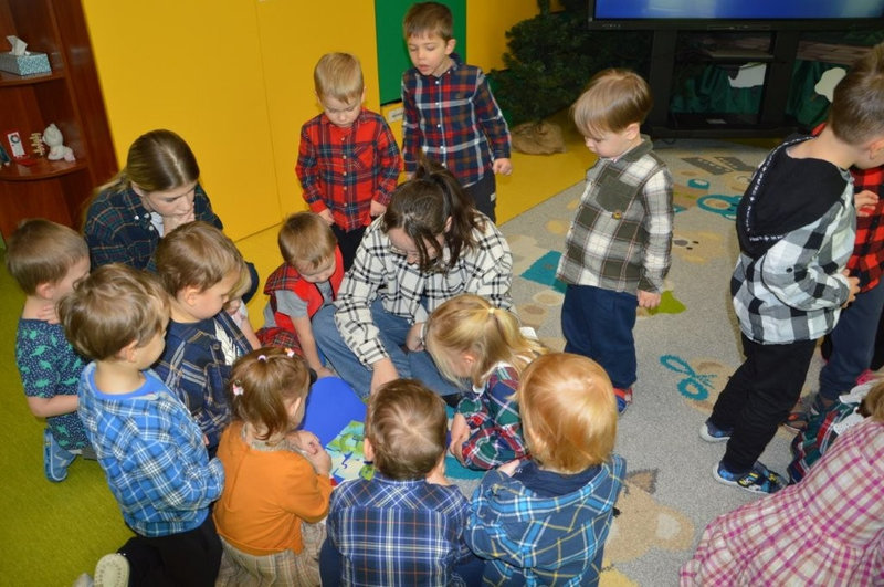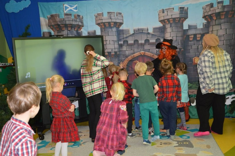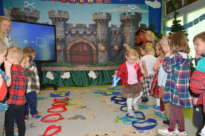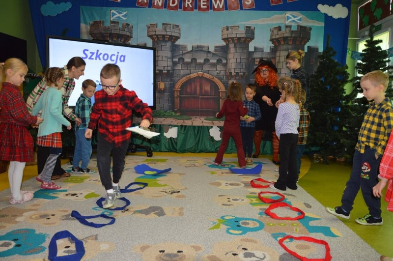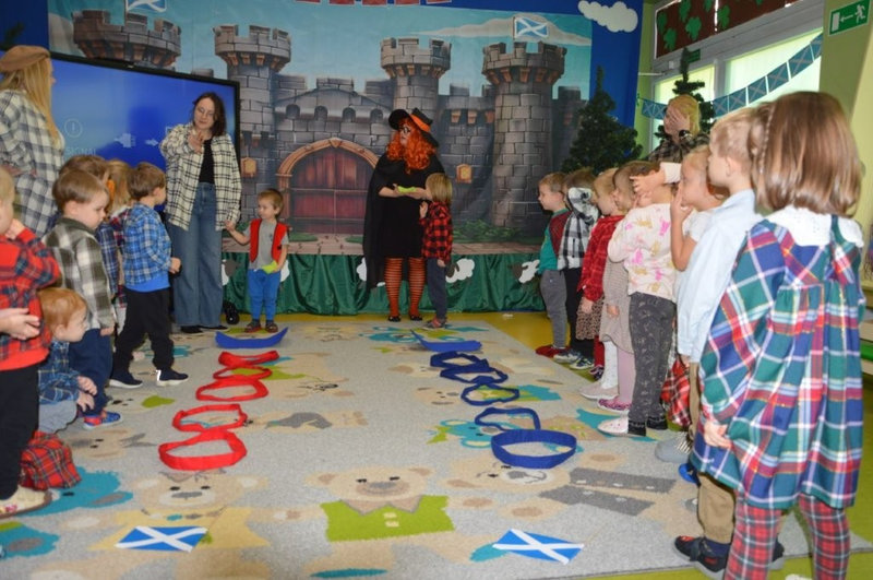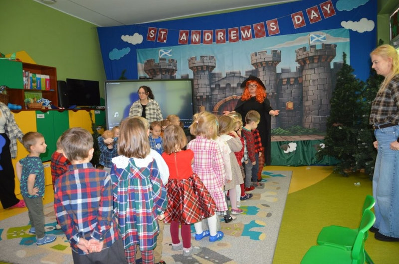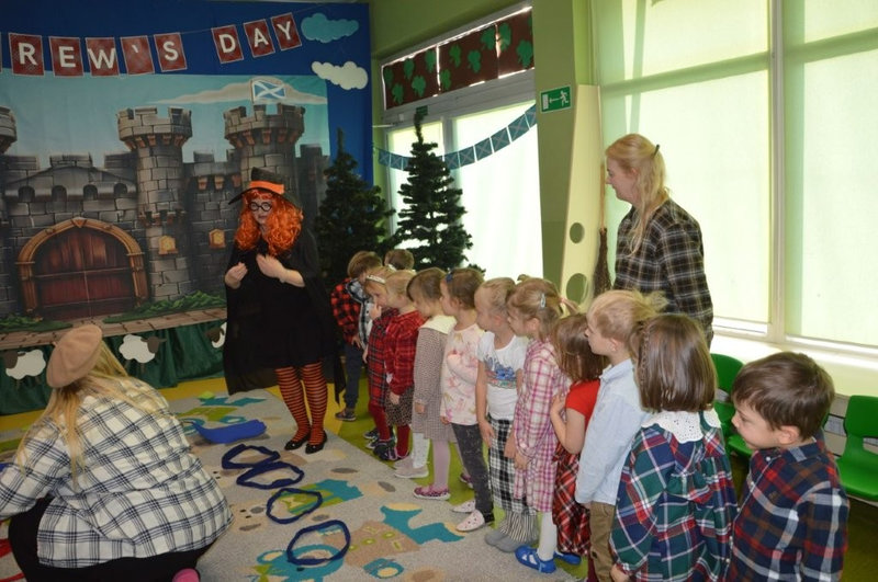 Przedszkole pełne było członków różnych klanów, co odzwierciedlały ubrania w kratę.